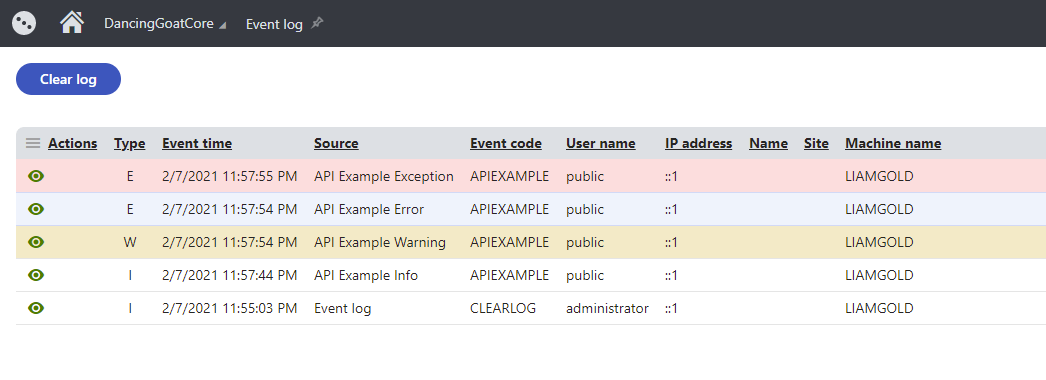 One of the features introduced by the AddKentico() service is the KenticoEventLog logger. This logger introduces the ability to log events from the .NET Core website, and displays them in the Event Log module within the admin site. You can log error messages, exceptions, warnings or even just debug information to assist with troubleshooting problems. The logger itself is built using the .NET Core logging API, so it should be easy to use and recognisable by ASP.NET Core developers.